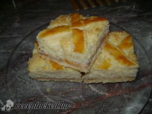 Hozzávalók: Tésztához: 35 dkg liszt 25 dkg margarin 10 dkg porcukor 1 tojás 0,5 csomag sütőpor baracklekvár Töltelék: 4 tojássárgája 4 tojás felvert habja 20 dkg porcukor 1 citrom reszelt héja 1 kis pohár tejföl 20 dkg kókuszreszelék Elkészítése: A tészta hozzávalóit alaposan összedolgozzuk. Egyharmadát félretesszük a rácsozáshoz. A tészta 2/3-át gáztepsi nagyságúra kinyújtjuk, majd […]