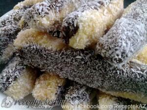 Hozzávalók: 250 g kókuszreszelék 400 g édesített sűrített tej 100 g tejpor 2 ek kakaópor Elkészítése: A kakaó kivételével a többi hozzávalót alaposan összedolgozzuk. A kapott massza felét áttesszük egy másik tálba, amit összekeverünk kb. 2 ek kakaóval. Mindkét masszát egy egész éjszaka hűtőben tároljuk, hagyjuk összeállni. Másnap mindkét masszából hengereket sodrunk a tenyerünk között, […]