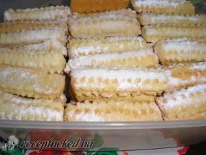 Hozzávalók: Tészta: 70 dkg liszt 25 dkg porcukor 15 dkg vaj 4 tojás sárgája 5 dkg kókuszreszelék 1 csomag bourbon vaníliás cukor késhegynyi sütőpor 2 ek zsíros tejföl 2 ek rum Forgatáshoz: 10 dkg porcukor 1 cs bourbon vaníliás cukor Elkészítése: A tészta anyagait dagasztógép segítségével gyorsan összeállítjuk, majd 1 napra hűtőbe tesszük. Másnap a […]