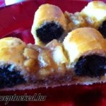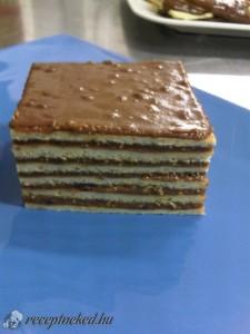 Hozzávalók: A tésztához: 60 dkg liszt 8 dkg margarin egy késhegynyi szódabikarbóna 1 tojás 14 dkg cukor 2-3 dl tej A krémhez: 40 dkg kristálycukor 2 liter tej 7 púpos evőkanál liszt 5 evőkanál kakaópor 25 dkg margarin Elkészítése: A tészta hozzávalóit összegyúrjuk, annyi tejjel, hogy egy közepesen kemény tésztát kapjunk. 6 gáztepsi méretű lapot […]