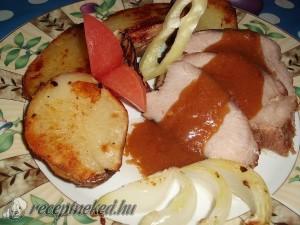 Hozzávalók: 1 báránycomb (kicsontozva kb. 1 kg) 1 fej fokhagyma fél citrom fél maréknyi kakukkfű néhány szál rozmaring só bors kb. 6 cl olívaolaj Elkészítése: A bárányt sütés előtt egy órával kivesszük a hűtőből, kicsontozzuk, szárazra töröljük. A serpenyőt felhevítjük, kevés olívaolajon alaposan körbepirítjuk a húst. Sózzuk, borsozzuk. A tepsi alját megöntözzük olívaolajjal, kibéleljük a […]
