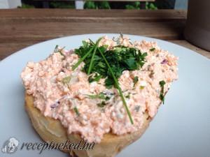 Hozzávalók: 50 dkg (lm) tehéntúró 3 ek (lm) tejföl 1 nagy mozzarella sajt 2 tk piros őrölt fűszerpaprika 4 szál lila újhagyma 1 kk őrölt kömény 1 kis csokor snidling 1 kis csokor petrezselyemzöld só frissen őrölt fehér bors Elkészítése: A túrót és a mozzarellát villával összetörjük, hozzáadjuk az aprított újhagymát, a tejfölt, összekeverjük a […]