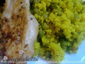 Hozzávalók: 120 g kuszkusz 300 g cukorborsó 2 ek vaj 250 ml víz só őrölt bors 1 tk kurkuma 1 tk ételízesítő petrezselyemzöld 300 g csirkemell só őrölt bors fokhagymapor olaj Elkészítése: A cukorborsót a vajon megpároljuk, megízesítjük sóval, őrölt borssal, kurkumával, ételízesítővel és az apróra vágott petrezselyemzölddel. Felöntjük a vízzel és felforraljuk. Amikor a […]