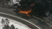 New Jersey, Egyesült Államok – A tartálykocsi közel 360.000 liter olajat szállított. A sofőrnek sikerült kimenekülnie az égő kamionból. A környékbeli házakat elővigyázatosságból evakuálták.