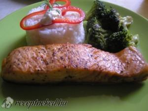 Hozzávalók: 30 dkg vadlazac (2 szelet) 10 dkg só 2 ek teavaj 1 késhegynyi frissen őrölt fekete bors Körethez 50 dkg párolt rizs 1 közepes db párolt brokkoli Elkészítése: A lazacfiléket tisztítás után a bőrös oldalukkal lefelé egy sóval telt tálba (sóágyra) helyezzük 2 órára érni. Erre azért van szükség, mert így a sütésnél finom, […]