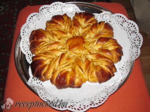 Hozzávalók: Tészta: 50 dkg finomliszt 2,5 dl tej 7 dkg cukor 4 dkg élesztő 5 dkg margarin 2 csomag vaníliás cukor 2 tojás 1 tojás sárgája Töltelék: kb 15 dkg baracklekvár Elkészítése: Egy tálba beleöntjük a lisztet, margarint, vaníliás cukrot és a tojásokat. Az élesztőt felfuttatjuk a langyos tejjel és a cukorral, majd a lisztes […]