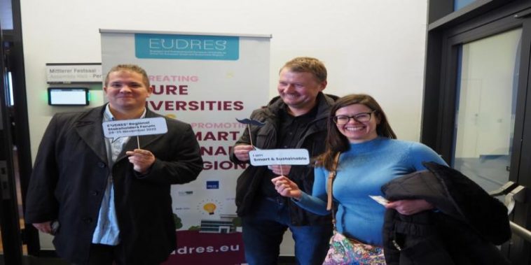 Sankt Pöltenben rendezték meg az E3UDRES2 projekt keretein belül az első Regional Stakeholders Forumot (regionális vállalkozói találkozót) 2022. november 24-én és 25-én. A rendezvény házigazdája a helyi egyetem (University of Applied Sciences Sankt Pölten / Fachhochschule Sankt Pölten) a nemzetközi hét keretei között fogadta az E3UDRES2 konzorcium jelenlegi és jövendőbeli tagegyetemeit illetve a velük érkező üzleti partnereket. Így kilenc ország egyetemei és társadalmi szerepvállalói vitathatták meg az egyes régiókat leginkább érintő oktatást, kutatást és innovációt felölelő kérdéseit.