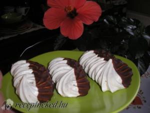Hozzávalók: 6 tojásfehérje 23 dkg cukor 2 evőkanál étkezési keményítő 1 evőkanál limelé 1 vaníliarúd kikapart magja 1/2 dl limoncello likőr (40 %-os) 10 dkg étcsokoládé Elkészítése: A tojásfehérjét a robotgép habüstjébe öntjük és bekapcsoljuk 3-as fokozatra. A cukrot hozzáadagoljuk keverés közben fokozatosan, majd a citromlevet, a vanília kikapart magját és a végén ha felverődött […]