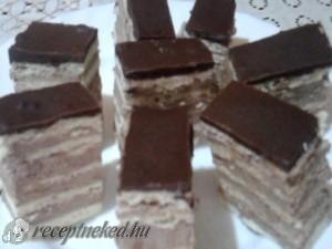 Hozzávalók: Tésztához: 60 dkg finomliszt 1 csomag sütőpor 5 dkg sertészsír 20 dkg porcukor 2 tojás 2 dl tejföl Krémhez: 1,6 l tej 7,5 dkg cukrozatlan kakaópor 10 dkg csokoládé 45 dkg cukor 1 csomag vaníliás cukor 7,5 ek finomliszt 20 dkg vaj Tetejére: 4 ek kakaópor 4 ek cukor 5 dkg vaj 1 ek […]