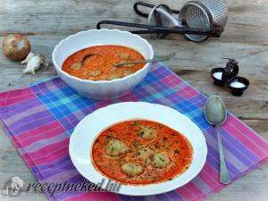 Hozzávalók: 2-3 krumpli 10 dkg füstölt kolbász 1 fej vöröshagyma 2 gerezd fokhagyma pirospaprika 1 tojás liszt (1 tk a leveshez + amennyit a gombóc felvesz) petrezselyemzöld ételízesítő só őrölt bors majoranna 2 dl tejföl a krumpli főző leve + víz Elkészítése: A krumplit főzzük puhára enyhén sós, ételízesítős vízben, majd szűrjük le, és a […]
