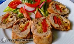 Hozzávalók: 4 csirkecomb 4 szelet trappista sajt 1 szál parasztkolbász 2 hegyes erős paprika só szárnyas fűszerkeverék Elkészítése: A csirkecombokat lebőrözzük. Óvatosan kivesszük a csontot, hogy a hús egyben maradjon. A vastagabb húsrészt késsel szétnyitjuk. A combfilét két nylon zacskó között óvatosan kiklopfoljuk. A húst sózzuk, szárnyas fűszerrel megszórjuk. A paprikákat szeletekre, a kolbászt karikákra […]