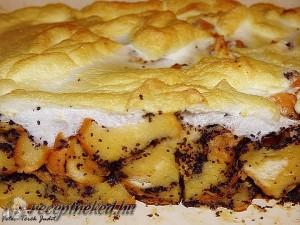 Hozzávalók: 10 kifli 1 liter tej 6 tojás (sárgája és fehérje elválasztva) 3 evőkanál méz 15 dkg gyümölcscukor (10 + 5 dkg) 15 dkg darált mák 10 dkg margarin felkockázva 1 pici csipet só Elkészítése: A sütőt begyújtom. Egy porcelán tálban a tojások sárgáját 10 dkg gyümölcscukorral és a mézzel elkeverem, majd beleszórom a darált […]