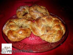 Hozzávalók: 40 dkg liszt 5 dkg darált mák 1 mk só 10 dkg cukor 1 citrom reszelt héja 2 tojás sárgája 1 csomag szárított élesztő (7 g) kézmeleg tej 4 dkg vaj A kenéshez: 1 tojásfehérje 2 ek szemes mák Elkészítése: A lisztet az élesztővel, darált mákkal összekeverjük egy kelesztőtálban, majd hozzáadjuk a cukrot, a […]