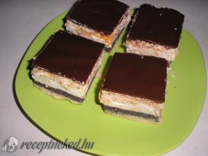 Hozzávalók: Gyúrt tésztához: 18 dkg liszt 15 dkg margarin 1 tojás 0,5 csomag sütőpor A piskótához: 5 tojás 5 ek cukor 15 dkg darált mák 1 citrom reszelt héja 1 tk sütőpor A krémhez: 15 dkg vaj 15 dkg porcukor 1 csomag vaníliás pudingpor 3 dl tej A csokimázhoz: 9 dkg tej tortabevonó 3 ek […]