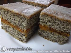 Hozzávalók: 250 g cukor 2 tojás 100 g darált mák 250 g sima liszt 1 csomag sütőpor 100 ml olaj 250 ml tej baracklekvár 100 g porcukor (máz) 3 ek citromlé (máz) Elkészítése: A tojásokat a cukorral habosra keverjük. Hozzáadjuk a tejet, az olajat, a mákot, végül a sütőporral összekevert lisztet, és alaposan összekeverjük. A […]