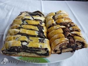 Hozzávalók: Tésztához: 50 dkg liszt 20 dkg cukor 20 dkg margarin 1 kocka élesztő 2-3 dl tej 1 tojás 1 csipet só A töltelékhez: 2 dl tej 20 dkg darált mák 40 dkg porcukor kakaópor (kb. 3-4 ek) Tetejére: 1 tojás Elkészítése: A tésztához 2-3 dl tejet langyosra melegítünk, belemorzsoljuk az élesztőt, és hozzáadjuk a […]