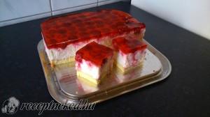 Hozzávalók: Piskóta: 4 tojás 4 ek porcukor 4 ek liszt 0,5 cs sütőpor Krém: 2 csésze rizs 2 ek vaj 2 citrom reszelt héja 2 cs vaníliás cukor cukor ízlés szerint 3 dl habtejszín 1 ek étkezési zselatin 0,5 l tej Tetejére: málna szemek piros tortazselé Elkészítése: A tojásokat szétválasztjuk, majd a sárgákat a cukor […]
