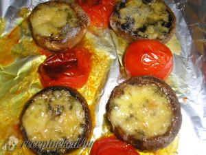 Hozzávalók: 20 dkg márványsajt 6 nagyobb csiperke gomba só bors 4 paradicsom 4 ek olívaolaj Elkészítése: A gombákat a törzsétől megszabadítjuk, és meghámozzuk. Olívával meglocsolunk egy alufóliával bélelt tepsit, és sorba rakjuk a gombafejeket. Rokfort sajtot morzsolunk a közepébe, és megborsozzuk. A paradicsomot megmossuk, és mellétesszük a tepsibe. Megborsozzuk, olívaolajjal meglocsoljuk, és petrezselyemmel is megszórhatjuk, […]