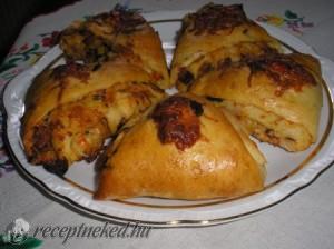 Hozzávalók: A tésztához: 50 dkg finomliszt só ízlés szerint 3 ek olívaolaj 1 tasak instant élesztő 2 dl víz (langyos) 1 db tojás (a kenéshez) A töltelékhez: 15 dkg mascarpone 1 db póréhagyma 1 db kápia paprika 1 kis fej lilahagyma 10 dkg főtt sonka 20 dkg mozzarella 1 tk só bazsalikom ízlés szerint (friss) […]