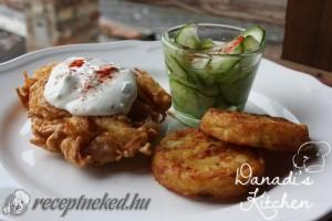 Hozzávalók: 8-9 szelet rövidkaraj 40 dkg reszelt burgonya liszt 2-3 gerezd fokhagyma tejföl só bors 2 tojás olaj reszelt sajt Elkészítése: 2 gerezd fokhagymát aprítunk, vagy préseljük, majd néhány kanál olajhoz adjuk. A karajokat jól kiklopfoljuk, sózzuk, borsozzuk majd megkenjük a fokhagymás olajjal és félretesszük. Reszeljük le a burgonyákat, adjuk hozzá a tojást, sót, borsot, […]
