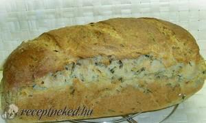 Hozzávalók: 1 ek olaj 2,5 dl víz 5 dkg juhtúró 1 nagy ek tejföl 50 dkg kenyérliszt 2,5 dkg élesztő 1 tk cukor 3 mk só 2 marék apróra vágott medvehagyma Elkészítése: A hozzávalókat a felsorolás sorrendjébe belepakoljuk a kenyérsütőgépbe. Ezután dagasztjuk és duplájára kelesztjük. (Én kétszer egymásután megdagasztottam a gépben, majd kelesztőtálba tettem, és […]