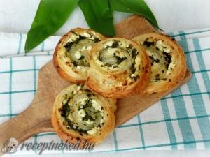 Hozzávalók: 1 csomag leveles tészta kb. 25-35 dkg túró 10 szál medvehagyma só őrölt bors Elkészítése: A medvehagymát apróra felvágjuk. Az előnyújtott leveles tésztát, ha a fagyasztóból vesszük ki, akkor szobahőmérsékleten felengedjük annyira, hogy könnyen ki lehessen tekerni. (Amennyiben nem előnyújtott a leveles tészta, akkor vékonyra nyújtsuk ki.) A kinyújtott tésztát ízlés szerint megszórjuk túróval, […]