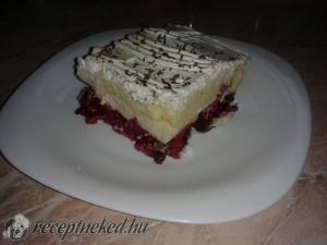 Hozzávalók: 2 üveg magozott meggy 2 cs vaníliás pudingpor 1 kk vanília aroma 1 csomag babapiskóta 1 l tej 30 dkg búzadara 2 dl habtejszín cukor ízlés szerint Elkészítése: A meggyet a levével együtt feltesszük egy lábasba melegedni, majd belefőzzük a búzadarát. A sűrű pépet egy jénai tálba vagy egy tepsi aljába simítjük és még […]