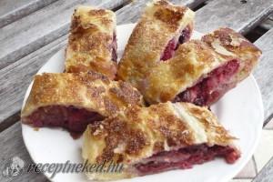Hozzávalók: 1 csomag mirelit leveles tészta 50 dkg meggy 10 dkg kristálycukor kevés őrölt fahéj kevés szegfűszeg kevés zsemlemorzsa liszt a nyújtáshoz 1 tojás a kenéshez Elkészítése: A leveles tésztát szobahőmérsékleten kiengedjük (ez 2-3 óra). A meggyet megmossuk, kimagozzuk, tálba tesszük, rászórjuk a cukrot, ízlés szerinti mennyiségű őrölt szegfűszeget és fahéjat. A kiengedett tésztát lisztezett […]