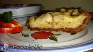 Hozzávalók: 20 dkg liszt 10 dkg puha vaj 8 dkg cukor 1 dkg kakaópor 1 tojás 1/2 cs sütőpor 1 cs vaníliás cukor 1 evőkanál tejföl A töltelékhez: 80 dkg alma 3 tojás 1 evőkanál liszt 10 dkg barna cukor 1 cs vaníliás cukor 3 dkg vaj 1/2 citrom reszelt héja 1,5 dl tejszín 1 […]
