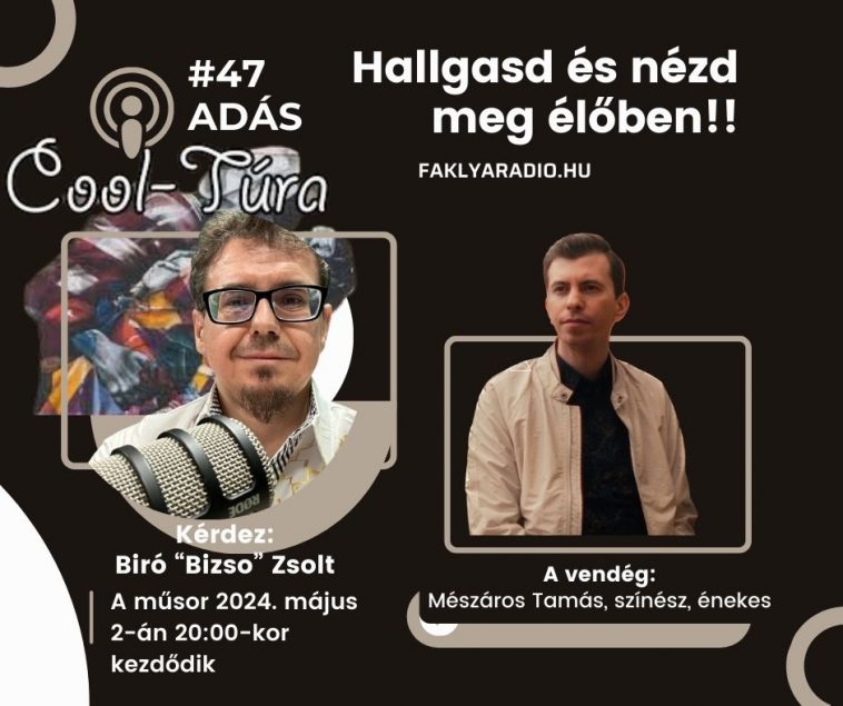 Erre pedig egy olyan összetett lelkű művészember, mint ő, tökéletesen képes. Május 2-án csütörtökön a Fáklya Rádió Cool-Túra című műsorában Mészáros Tamás énekes és színész lesz este 8 órától Biró Zsolt vendége, s garantáltan érdekes beszélgetésre kell számítani.