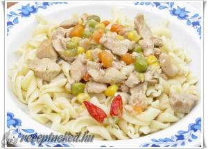 Hozzávalók: 1 kg pulyka felsőcomb filé (készülhet csirkéből, vagy sertésből is) 25 dkg fagyasztott mexikói zöldségkeverék (sárgarépa kocka, zöldborsó, kukorica) 1 fej vöröshagyma apróra kockázva 2 gerezd fokhagyma, 1 ek tejföl kevés csili só őrölt bors kevés étolaj Elkészítése: A húst apró darabokra, vagy vékony csíkokra vágjuk. A hagymát kevés olajon feltesszük párolni, és hozzáadjuk […]