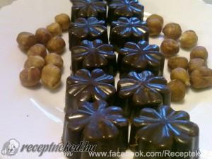 Hozzávalók: 100 g tejcsokoládé 150 g mogyorókrém 15 mogyoró Elkészítése: A gőz fölött megolvasztott tejcsokoládéval kikenjük a bonbonforma mélyedéseit, majd betesszük kb 5 percre a hűtőbe vagy fagyasztóba, hogy megdermedjen. Ezt a műveletet összesen 3 x ismételjük meg. Mikor az utolsó réteg is megdermedt, mindegyik mélyedésbe tegyünk egy-egy szem mogyorót és langyosra felmelegített mogyorókrémet csorgatunk […]