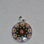 Muránói üveg medál. Egyedi ékszer, millefiori technikával készített elegáns üveg medál, ezüst keretben.