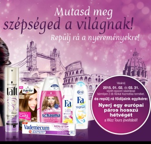 Vásárolj egyszeri vásárlással legalább 2 db Henkel szépségápolási terméket (Palette, Natural&Easy, Perfect Mousse, Color Mask, got2b, Taft, Vademecum, Gliss Kur, Schauma, Fa, Fa Men Xtreme, Essence Ultime, Blond Ultime, Syoss, Seborin, Styliste Ultime). A blokkon/számlán szerepeljen a termék márkaneve és az AP szám.