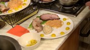 Kulajda leves, dupla cseh sült, párolt káposztával, Tarkedli diókrémmel és csoki öntettel