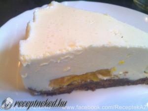 Hozzávalók: 130 g kakaós keksz 80 g margarin 400 g joghurt 100 g porcukor 180 ml tejszín 1 ek vaníliás cukor 3 narancs 50 ml forró víz 20 g zselatinpor Elkészítése: A háztartási kekszet jó alaposan összetörjük, majd a felmelegített margarinnal összedolgozzuk. Egy 22 cm-es átmérőjű tortát kibélelünk fóliával (vagy mikrotén zacskóval) és a kekszes […]