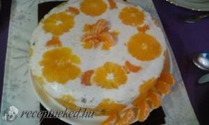 Hozzávalók: Tésztához: 3 tojás 10 dkg cukor 20 dkg liszt 2 teáskanál szódabikarbóna Töltelékhez: 3 narancs 3 mandarin 3 banán 1 doboz ananászkonzerv Krémhez: 2 csomag zselatin (5 dkg) 85 dkg tejföl 7 evőkanál cukor 1 csomag vaníliás cukor Elkészítése: A tésztához a tojásokat a cukorral robotgép segítségével habosra kavarom (kb. 10-15 perc), majd hozzáadom […]