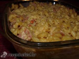 Hozzávalók: 1 csomag durum tészta 15 dkg gépsonka 1 kápia paprika 2 dl főzőtejszín 15 dkg chedaar sajt 15 dkg trappista sajt 10 dkg gouda sajt 5 dkg márványsajt só, bors 1 evőkanál étkezési keményítő Elkészítése: A tésztát főzzük félkészre. Roppanjon, amikor leszűrjük. A tejszínt melegítsük fel a sajtokkal, kivéve a trappistát, majd a keményítőt […]