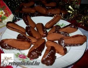 Hozzávalók: Tésztához: 30 dkg vaj 15 dkg cukor 3 tojás 26 dkg finomliszt 15 g kakaópor Töltéshez: 20 dkg lekvár Bevonathoz: 10 dkg étcsokoládé Díszítéshez: 1 tk kókuszreszelék Elkészítése: A vajat a porcukorral, kevés liszttel habosra keverjük, majd hozzáadjuk egyenként a tojásokat, a megmaradt lisztet és végül a kakaóport. Habzsákba töltjük a masszát és 5 […]