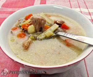 Hozzávalók: 500 g borjúszegy 2 szál sárgarépa 1 szál petrezselyemgyökér 1/2 karalábé 1 maréknyi zöldbab (fagyasztott is lehet) 1 fej hagyma 2 gerezd fokhagyma 1 kevés savanyú káposztalé 1 kisebb lestyán levél 1 csipet só és bors 3 kanál tejföl Elkészítése: A csorba levest jelent. A csorbaleves kifejezés tehát nem helyes! Eredetileg, korpaciberével savanyítják, de […]