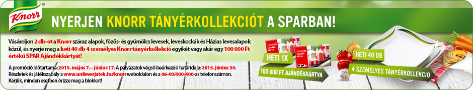A Játék időtartama alatt a magyarországi SPAR, INTERSPAR és SPAR partner üzleteiben egy alkalommal vásároljon meghatározott Knorr termékek közül bármely 2 darabot és a termékek megvásárlását követően