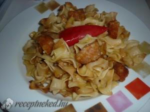 Hozzávalók: 50 dkg nagykocka tészta 1 fej vöröshagyma 5 dkg füstölt szalonna 2 paradicsom 20 dkg füstölt kolbász víz Elkészítése: A füstölt szalonnát kis kockákra vágjuk, és megpirítjuk. Azután hozzáadjuk a vékonyra szeletelt hagymát, és üvegesre pirítjuk. A paradicsomot és a kolbászt feldaraboljuk, hozzáadjuk a hagymához, vízzel felöntjük és felforraljuk. A tésztát sütőpapírral bélelt tepsibe […]