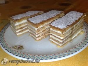 Hozzávalók: 3 tojás 3 ek olvasztott vaj 3 ek méz 20 dkg cukor 2 tk szódabikarbóna 45-50 dkg liszt 1,5 liter tejföl 25 dkg porcukor Elkészítése: A 3 tojást elkeverjük a 20 dkg cukorral, majd gőz felett, állandóan kevergetve főzzük, míg duplája nem lesz. Levesszük a tűzről, beledolgozzuk a mézet és a vajat, végül a […]