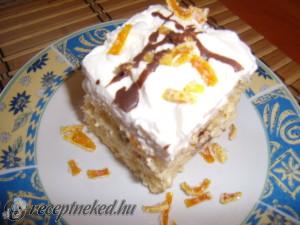 Hozzávalók: Tésztához: 5 tojás 20 dkg liszt 25 dkg cukor 1 csomag vaníliás cukor 1 csomag sütőpor 3 ek étolaj 5 ek víz Krém hozzávalói: 3 csomag vaníliás pudingpor (főzős) 9 dl tej 20 dkg cukor 1 dl víz rum 1 csomag mazsola (elhagyható) 3 dl habtejszín, 2 tk zselatin kandírozott narancshéj Díszítés: 2 dl […]