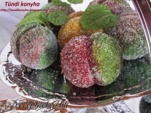 Hozzávalók: Tészta: 8 dkg + 70 dkg liszt 20 dkg margarin (szoba hőmérsékletű) 25 dkg cukor 1 tojás 1,5 dl tej csipet só fél csomag sütőpor Töltelék: 20 dkg margarin 3 tojás 10 dkg cukor rum aroma (ízlés szerint) 2 ek sárgabarack lekvár kakaópor (cukrozatlan, ízlés szerint) Színezéshez: piros, zöld és esetleg sárga színű ételfesték […]