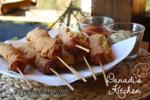 Hozzávalók: 7 dkg finom liszt 7 dkg kukorica liszt 4 g szárított élesztő 1 tojás 1 dl tej kevés cukor só virsli pálcika Elkészítése: A tejet megmelegítjük, megszórjuk cukorral, majd beleütjük a tojást és megszórjuk az élesztővel. A liszteket összekeverem, sózom, végül elkeverem a “nedves” hozzávalókkal. Ezt a masszát (palacsinta tésztát) egy magas falú pohárba […]