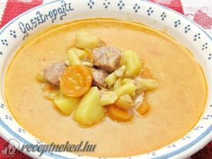 Hozzávalók: 60 dkg pulyka felső comb filé 2 marék zöldbab 2 krumpli 1 fej vöröshagyma 1 gerezd fokhagyma 2 szál sárgarépa 1 szál petrezselyem gyökér 1 kis csokor petrezselyem zöld 2 dl tejföl 1 evőkanál liszt 1 kávéskanál pirospaprika 1 mokkáskanál őrölt kömény só, őrölt bors 1 dl száraz fehérbor Elkészítése: A húst feldaraboljuk, majd […]