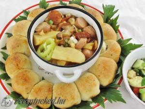 Hozzávalók: 5 kg krumpli 1,5 kg hagyma 5 gerezd fokhagyma 0,5 kg gyulai kolbász 1 kg virsli 20 dkg füstölt szalonna 1 üveg lecsó 3 kanál zsír 2 zöldpaprika 1/2 hegyes csípős paprika 2 kisebb chili 200 g házi készítésű darált paprika (paprikakrém) 200 g aszalt paradicsom 1 lestyánlevél 2 szál kakukkfű néhány bazsalikomlevél kevés […]
