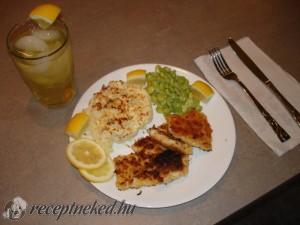 Hozzávalók: 65-70 dkg fagyasztott tonhal 1 citrom 2 ek finomliszt 1 ek piros fűszerpaprika só 2 ek olajbogyó 5 dkg bacon 2 ek olaj 2 ek zsemlemorzsa Elkészítése: A fagyasztott halat felolvasztjuk. Közben a citromot megmossuk, majd félbevágjuk. Az egyik felet vékony karikákra szeleteljük, a másik felének a héját lereszeljük, illetve a levét kicsavarjuk. A […]