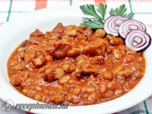 Hozzávalók: 0,5 kg szárazbab 10 dkg bacon 0,5 kg pulykahús 0.5 l paradicsompüré 3 fej hagyma 5 gerezd fokhagyma 1 marék csemege kukorica 2 db zöldpaprika 1 kevés só 1 csipet őrölt bors 1 kanál zsír 1 db chilipaprika 1 kevés bazsalikom levél 1 kevés kakukkfű Elkészítése: A babot előző este beáztatjuk, majd másnap sós, […]